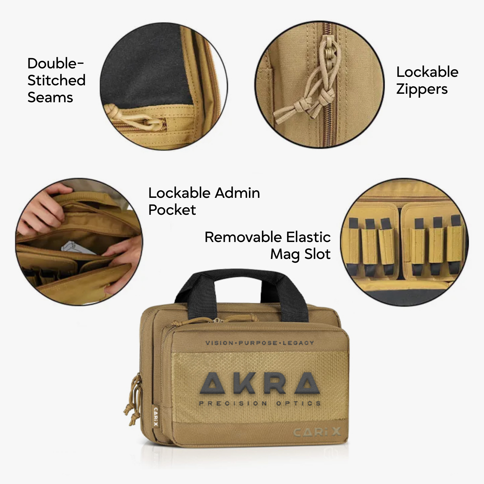 The AKRA CARI X Pistol Bag is built for shooters who take their gear seriously - combining durability, function, and clean tactical design in one rugged package. Constructed from reinforced waterproof 600D Oxford material with lockable zippers and high-strength buckles, this bag offers secure storage and fast access for your pistol, mags, and accessories.